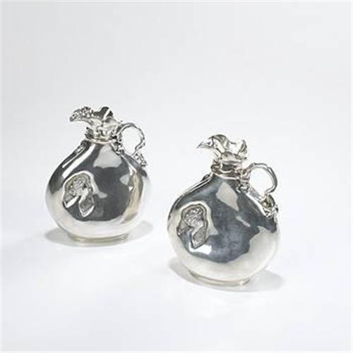 Jean Puiforcat vases, pair France, c. 1948 sterling silver 5.75"w x 2.75"d x 7.25"h Marked with French touch marks and stamped to bottom: [Puiforcat, France].