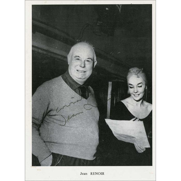 Distinguished French director (1894–1979) whose 1939 classic Rules of the Game takes a place among the most acclaimed films ever made. Nice 7.75 x 10.75 book photo of Renoir smiling pleasantly for the camera, signed in black felt tip. In very good condition, with light overall creasing and wrinkling, and some light contrast to end of signature. Pre-certified PSA/DNA and RRAuction COA.