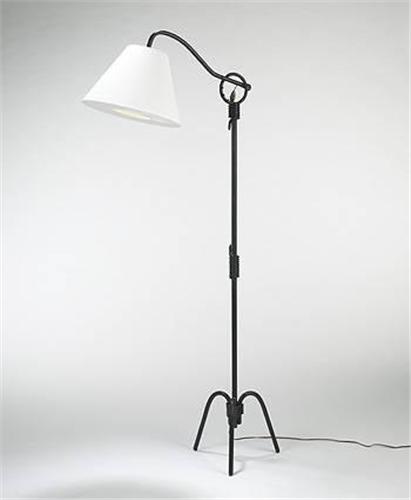 Jean Royere, attribution adjustable floor lamp France, c. 1950 iron, linen 24"w x 73"h