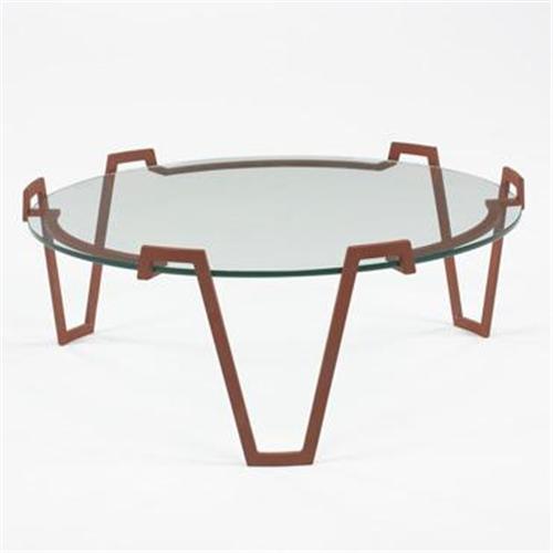 Jean Royre<BR>coffee table<BR>France, 1955<BR>enameled iron, glass<BR>32.5 dia x 12.5 h inches<BR>Literature: <BR><i>Jean Royre</i>, Emmanuel and Vivier, pg. 214 <i>Jean Royre: Decorateur Paris</i>, Musee des Arts Decoratifs, ppg. 79-80 illustrate form in situ<BR><BR>Condition of the item is not included in this description. Condition reports are available from Wright upon request. Wright strongly recommends that you review a condition report for each item on which you plan to bid.