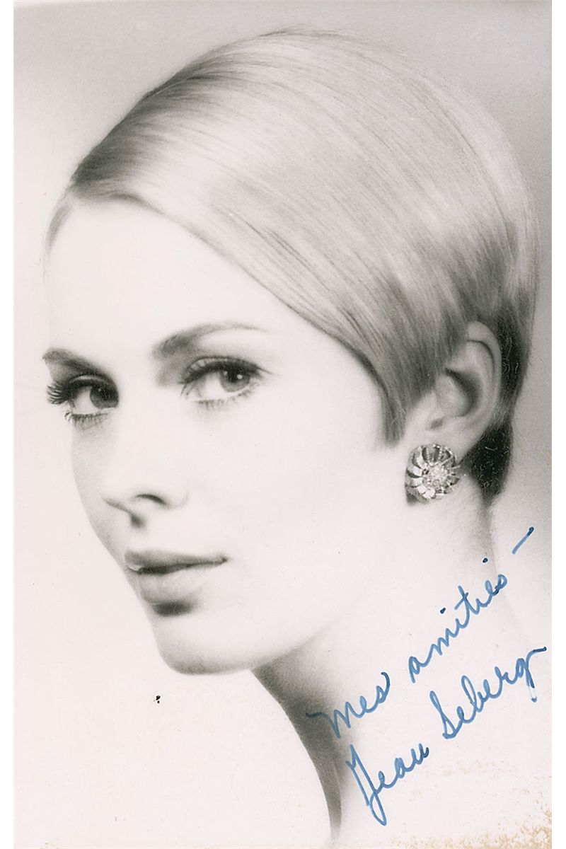 Perhaps best remembered for her role in Jean-Luc Godard’s seminal New Wave classic Breathless, Iowa-born Seberg (1938–1979) was found dead at the age of 40 from a probable suicide by barbiturate overdose. Her support of the Black Panthers attracted the attention of the FBI, leading some to speculate that her radical political ties may have contributed to her decision to take her life. Vintage matte-finish 3.5 x 5.5 head-and-shoulders photo, signed in fountain pen. In fine condition, with some light staining along bottom edge, and light postal impressions to left edge.