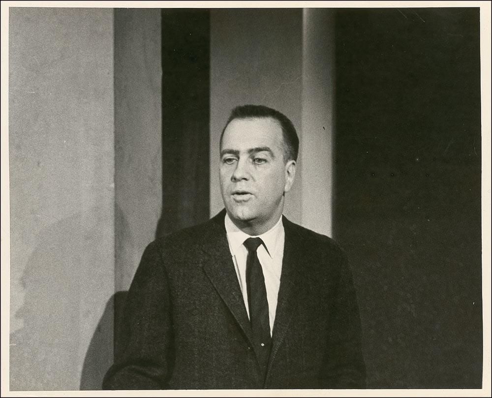 Radio and TV personality, writer, and actor (1921–1999) best-known to modern audiences for the film A Christmas Story, which he narrated and co-scripted, based on his own semi-autobiographical stories. Glossy 10 x 8 photo, signed and inscribed in blue ballpoint “To Paul, Thanks for being such a loyal fan. Best regards, Jean Shepherd.” Impressions to image from signature and inscription on reverse, and some scattered light toning, otherwise fine condition. Accompanied by the original RKO Radio Pictures mailing envelope.