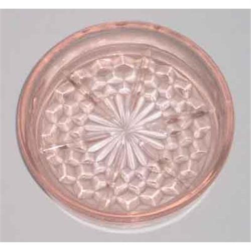 The Jeannette Glass Co. produced their Cube or Cubist pattern during the years 1929-1933. Reminiscent of the Cubist slyle of painting by Braque and Piccaso earlier in the century this popular Art Deco design, as its name implies, consists of rows of three dimentional cubes jutting out concentrically from the glass. This set of SIX (6) gorgeous pink Depression Glass Cube or Cubist coasters by Jeannette have a diameter of 3 1/4 inches, and are all in excellent condition.