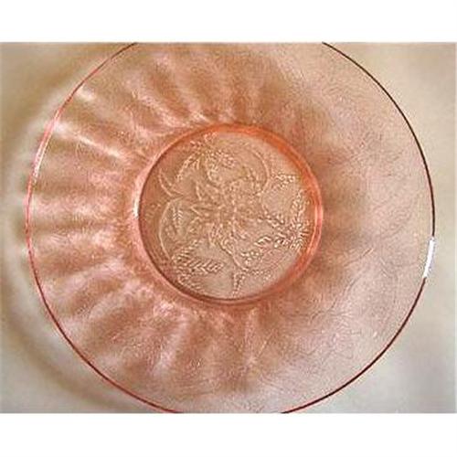 This set of six 9 inch dinner plates were produced by the Jeannette Glass Co. during the 1930s, in their Floral Poinsettia pattern. Although the photo only shows one plate this auction is for all SIX pink Depression glass Floral Poinsettia dinner plates that are all in excellent condition