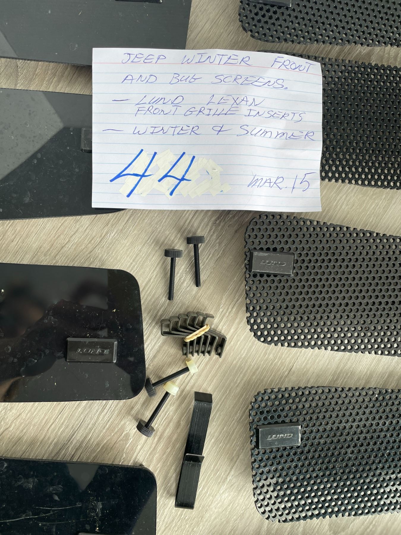 Jeep winter front and bug screens, and Lund Lexan front grille inserts
