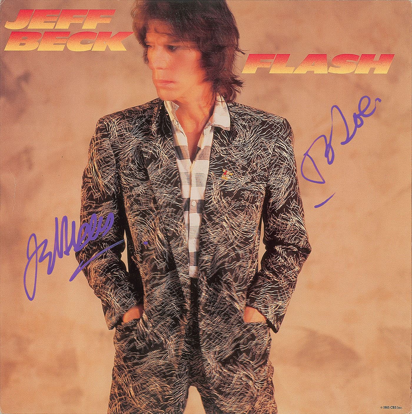 Flash album flat signed and inscribed on the front in purple paint pen, "To Joe, Jeff Beck." In fine condition, with light edge creasing. The record is not included. Consignor notes that the signature was obtained at the Quaker Square Hilton before his show at the Blossom Music Center.