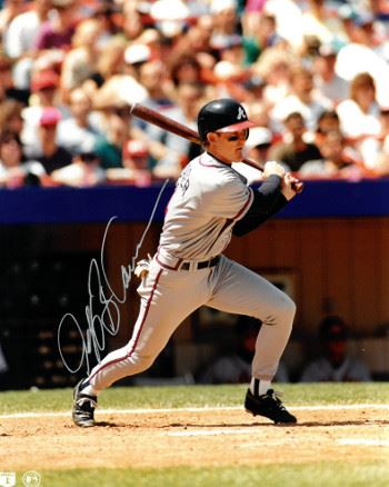 Jeff Blauser was selected by the Braves in the first round (4th pick) of the 1984 June amateur draft (secondary phase) and made his major league debut on July 5, 1987. Blauser was a powerful right-handed shortstop at 6' 0", 170 lb. In 1993, Blauser had a breakout season, batting over .300 for the first time and scoring 110 runs. He was also named to the All-Star team. Jeff Blauser has hand signed this Atlanta Braves 8x10 Photo. Certificate of Authenticity from Athlon Sports Collectibles.