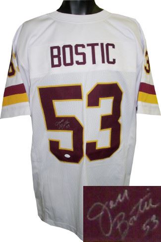 Jeff Bostic was a member of the Washington Redskins from 1980 to 1993, helping them win Super Bowls XVII, XXII and XXVI. He was also named one of the 70 greatest players in Redskins history. Bostic was one of "The Hogs," the Redskins' famed offensive line which also included guards Russ Grimm and Mark May, tackles Joe Jacoby and George Starke, and a few other new additions over the years. Jeff Bostic Washington Redskins has hand signed this unlicensed TB custom-prostyle White jersey with twill stitched nameplate and numbers. JSA Hologram and Certificate of Authenticity.