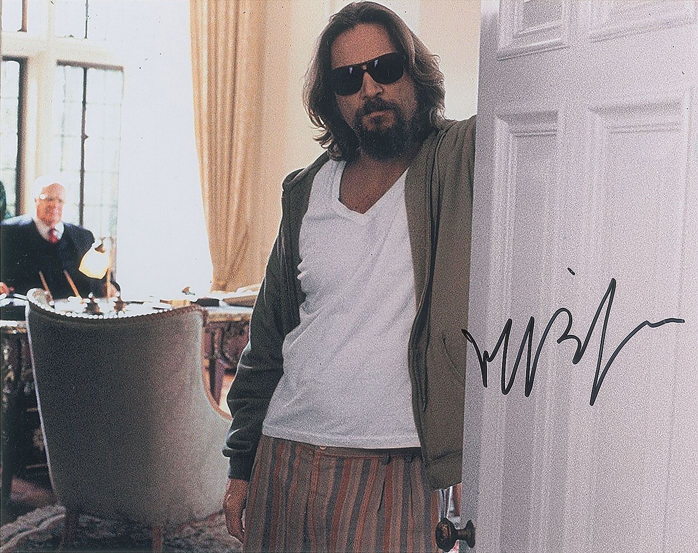 Color glossy 10 x 8 photo of 'The Dude' from the 1998 Coen brothers film The Big Lewbowski, signed in black felt tip. In fine condition. Originally obtained by in-person specialist Mike Wehrmann.