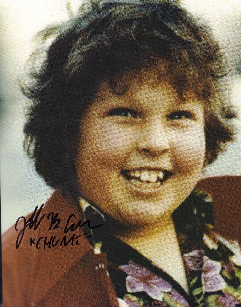A early 8x10 photo from Goonies signed and wrote "Chunk" by Jeff Cohen with COA.