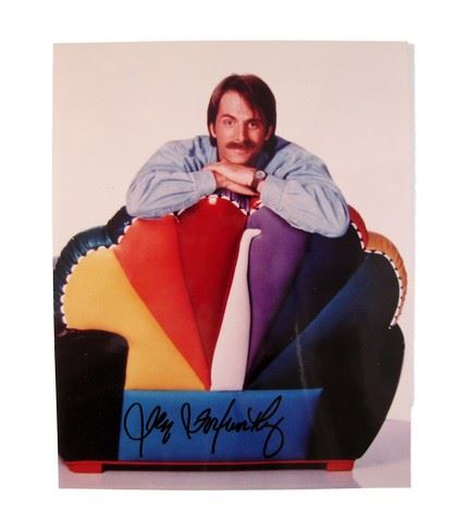 Jeff Foxworthy signed color photo. This great item for you Jeff Foxworthy fans features the great comic posed with the famous NBC peacock logo which he has signed at the bottom. (approx. 8" x 10")