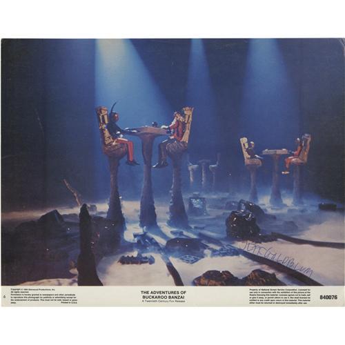 <B>Jeff Goldblum Signed Lobby Card.</B></I> A 14" x 11" lobby card for <I>The Adventures of Buckaroo Banzai</B></I> signed by the actor in blue ink, in Excellent condition with mild wear.<BR><BR><b>Shipping:</b> Flat Material, Large (<a target="_blank" href="http://www.heritageauctions.com/common/shipping.php">view shipping information</a>)