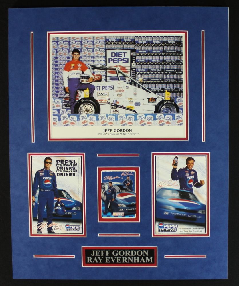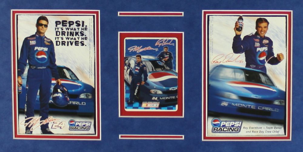 Piece measures 16x20 in size and contains several photos as well as a NASCAR card of the two drivers. See photo for details.