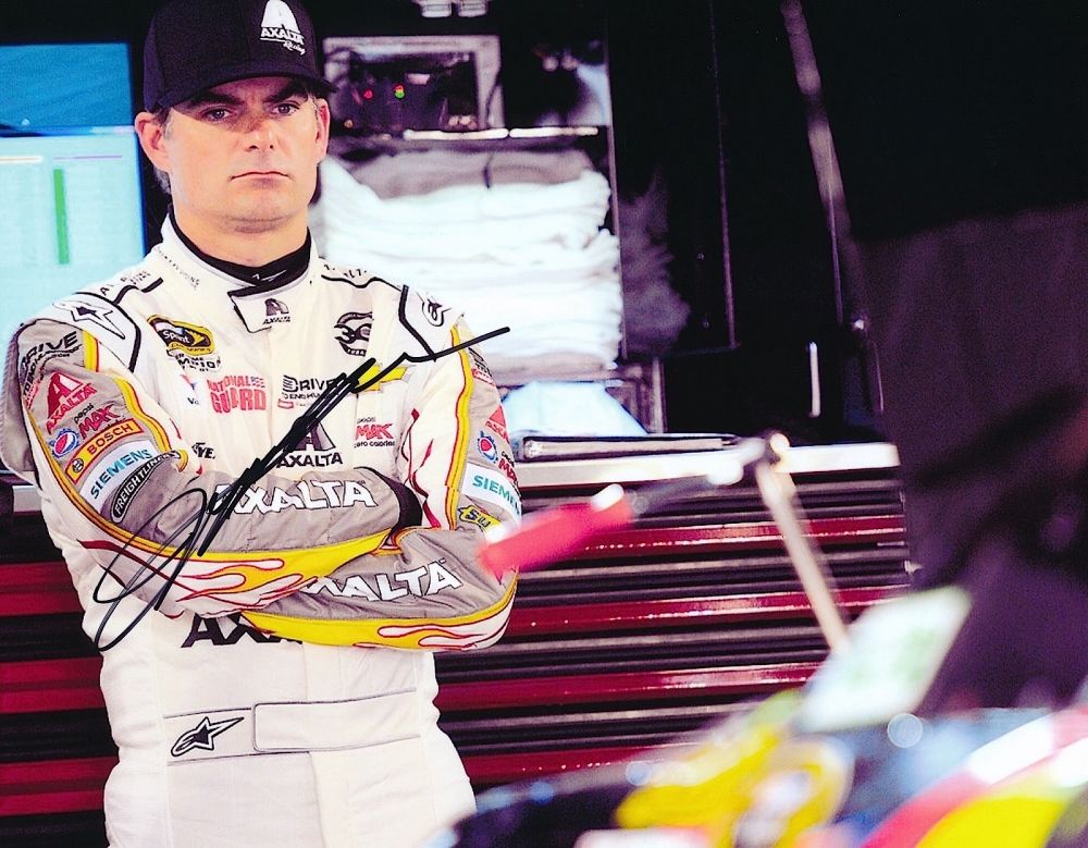 8" x 10" photo hand-signed by NASCAR superstar Jeff Gordon. Autograph includes a Pristine Auction LOA and lifetime guarantee for authenticity purposes.
