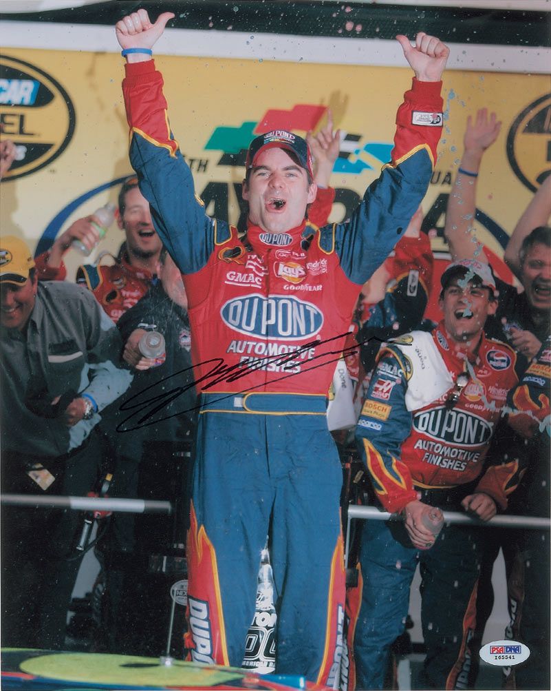 Two color satin-finish 11 x 14 photos, including one of Gordon celebrating a victory, each signed in black felt tip. In fine condition, with PSA/DNA authentication labels affixed to lower corners. Accompanied by certificates of authenticity from PSA/DNA.