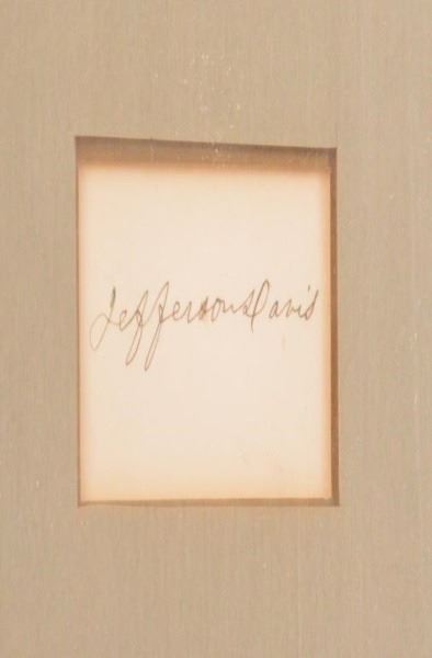 Jefferson Davis Autograph. Frame: 10"X 15-1/3 Image: 4-1/3X 6-1/3"