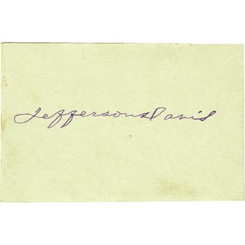 <B>Jefferson Davis Signed Card.</B></I> An excellent example of this always-in-demand autograph. Measures 2" x 3", with strong, clear ink signature.<BR><BR><b>Shipping:</b> Small Flat (<a target="_blank" href="http://www.heritageauctions.com/common/shipping.php">view shipping information</a>) <BR><BR><B>Important notice