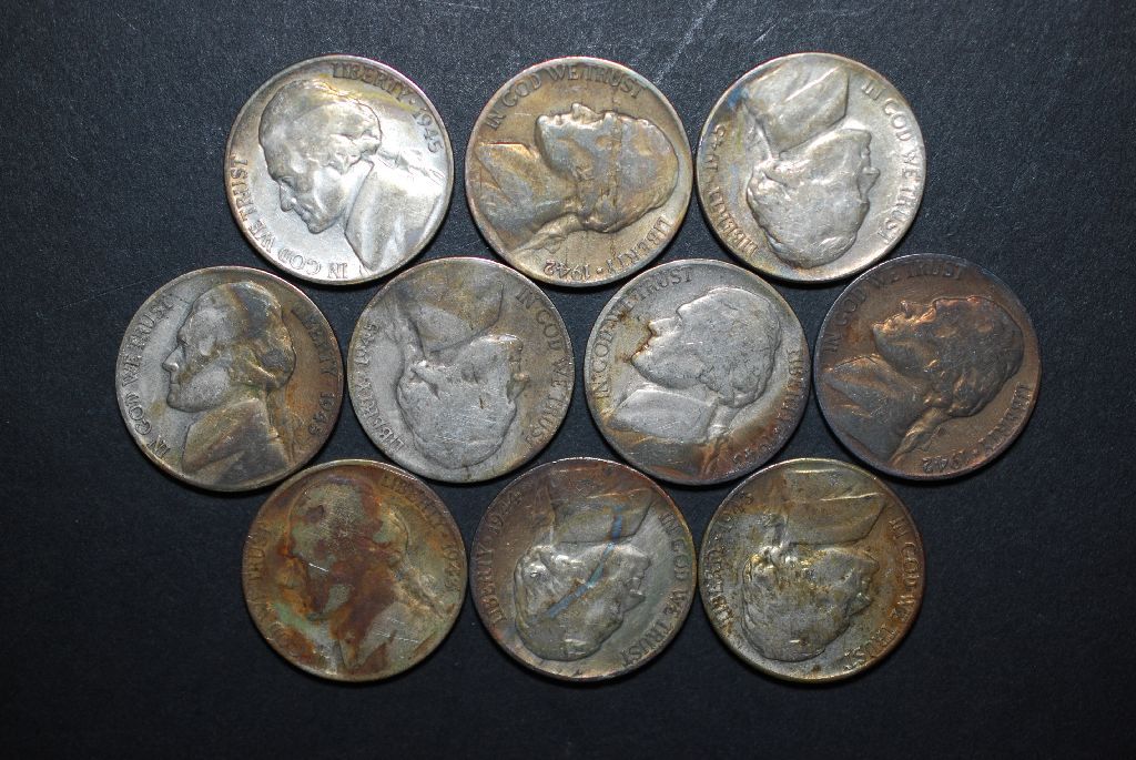 Jefferson Silver Wartime Nickels; Various Dates & Conditions; Lot of 10; EST. $20-30