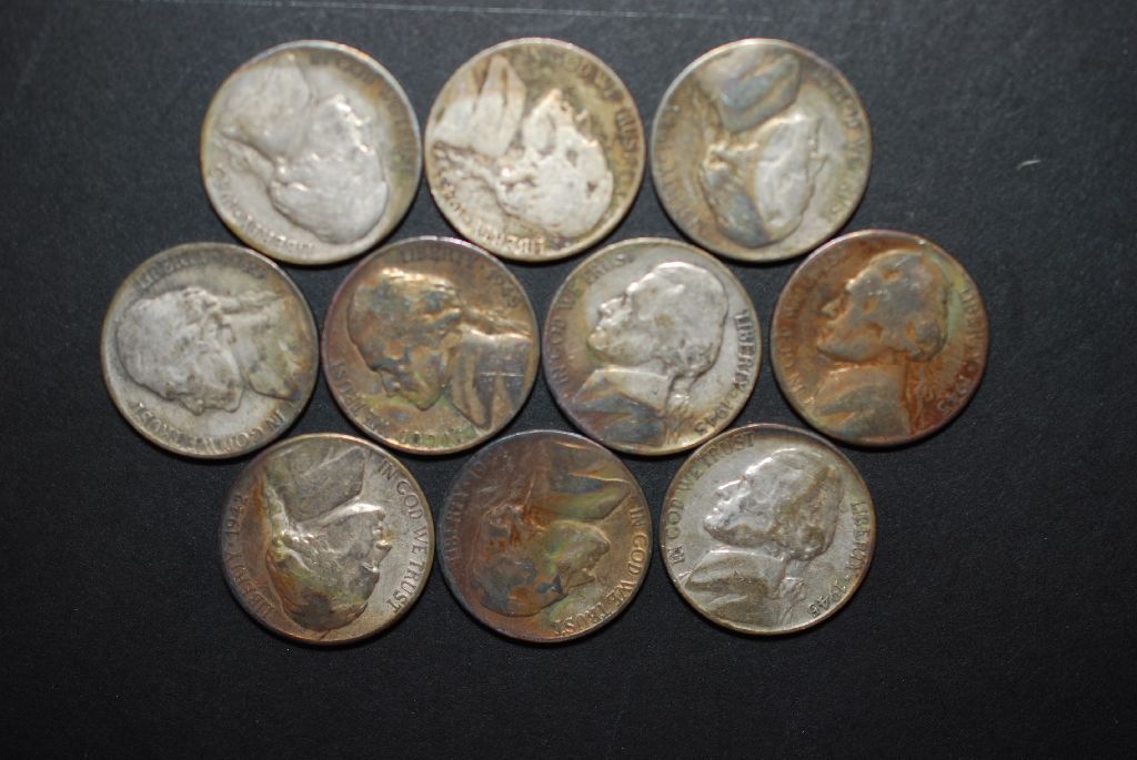 Jefferson Silver Wartime Nickels; Various Dates & Conditions; Lot of 10; EST. $20-30