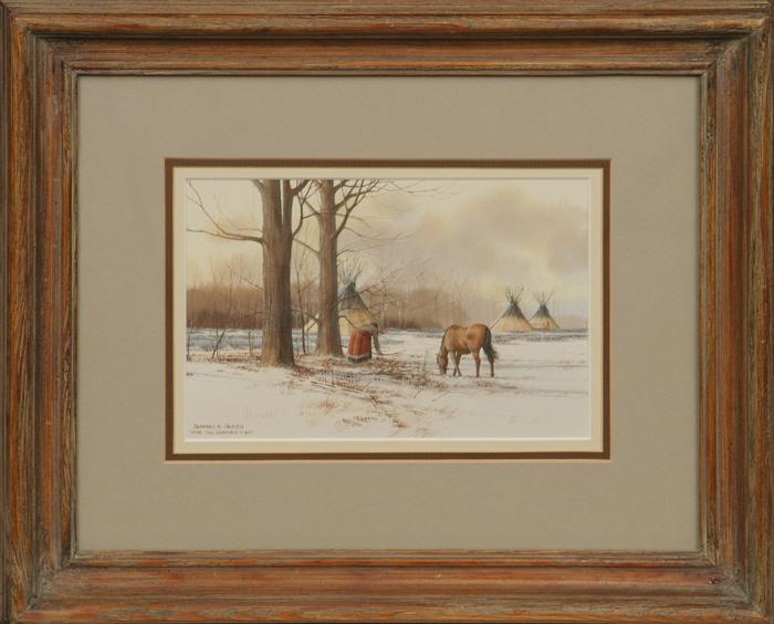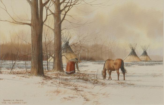 Jeffrey Craven (b. 1950). For the Warming Fire. 6" x 9" gouache. titled and signed lower left. Condition Report: Fine condition.