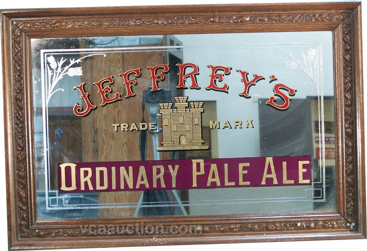 Jeffrey's Ordinary Pale Ale Pub Mirror, Reverse Glass In Fancy Frame Signed J. Baird Ltd. Glascow - 36" x 24"