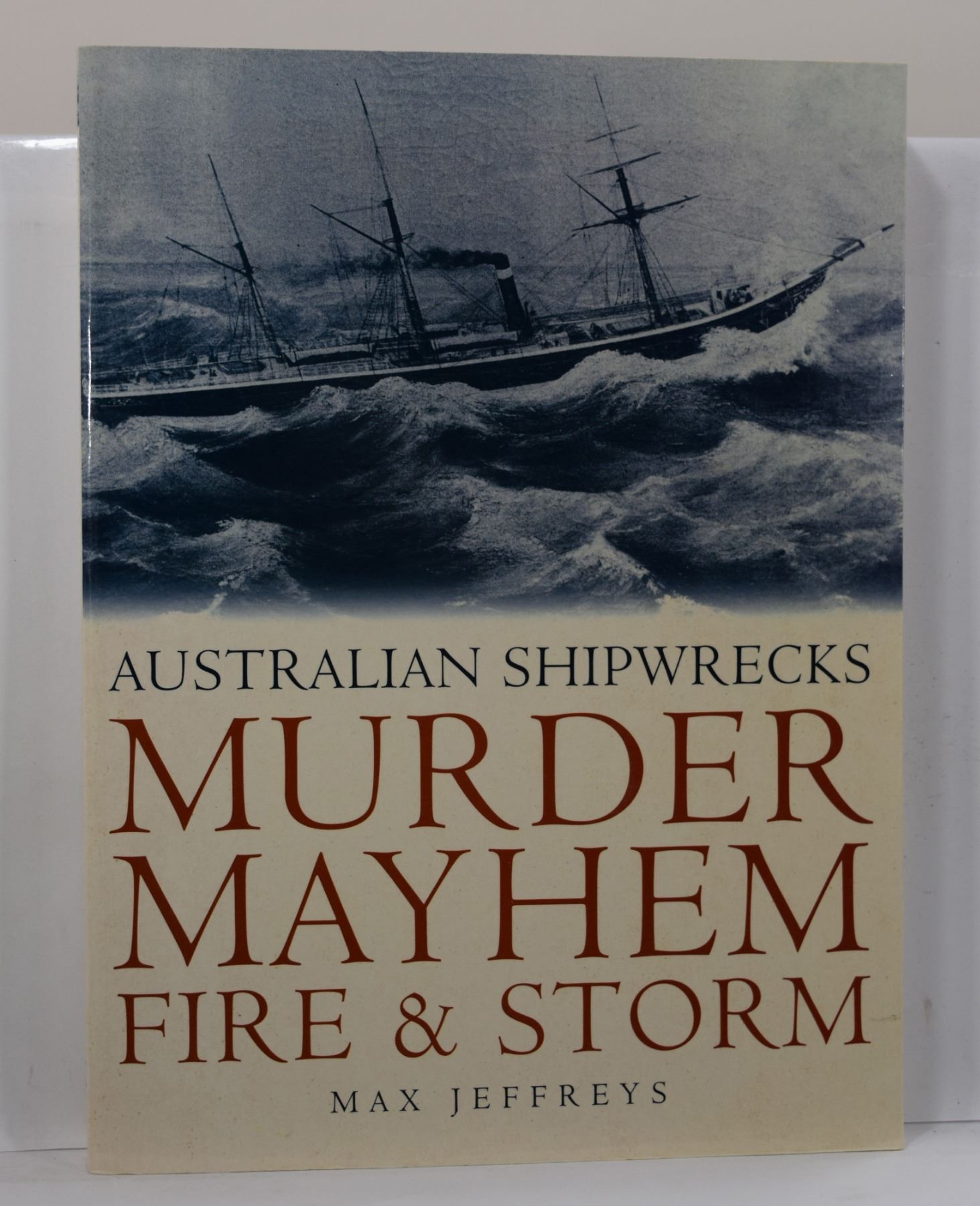 Jeffreys, Max. MURDER MAYHEM FIRE & STORM: AUSTRALIAN SHIPWRECKS. New Holland Publishers Pty Ltd. 1999. 8vo, 262 pages; Softcover; . Subject: History - Shipwrecks