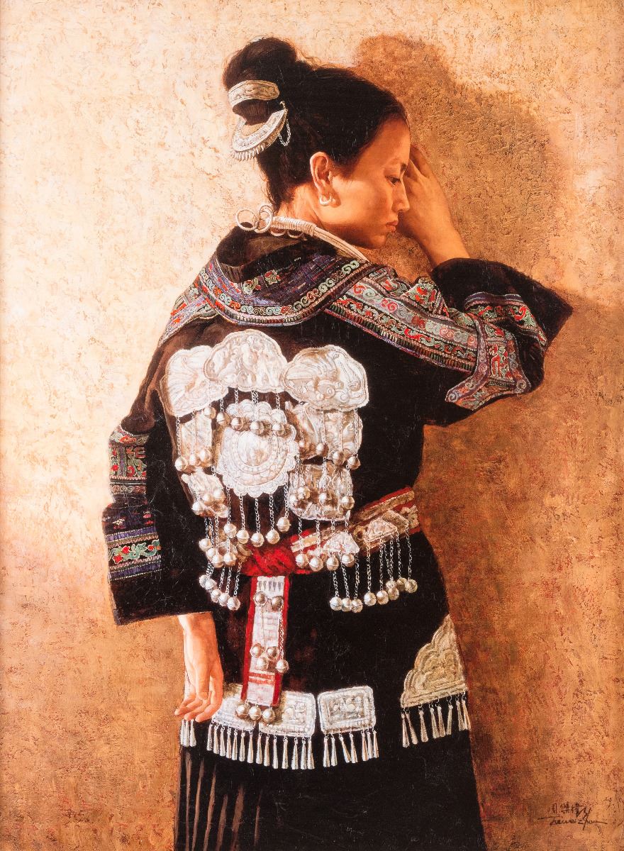 Jei-Wei Zhou. A Miao Beauty. 40" x 30" giclee print. Signed lower right. Hand-enhanced with original signature. Verso: Signed and numbered 9/150.