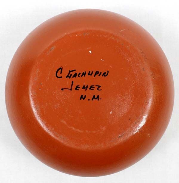 Native American Jemez Hand Painted Ceramic Pottery Bowl by C. Gachupin, measures 3.5'' x 6'' and is signed on the bottom