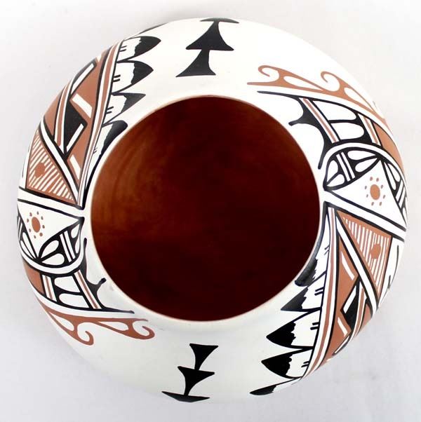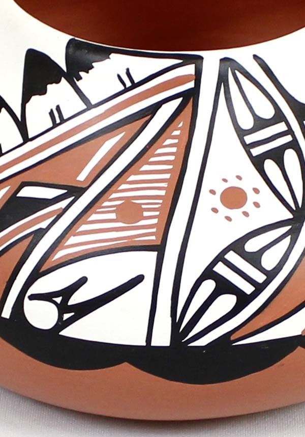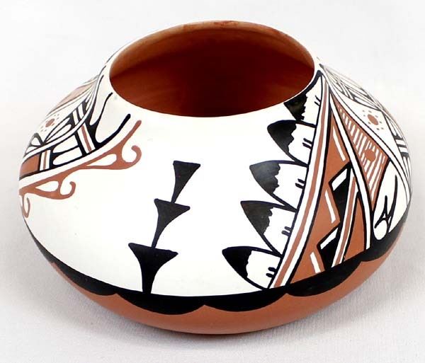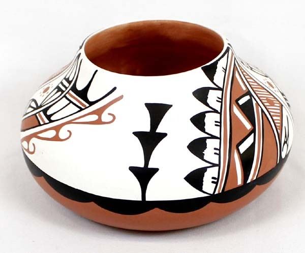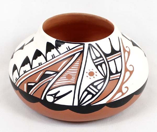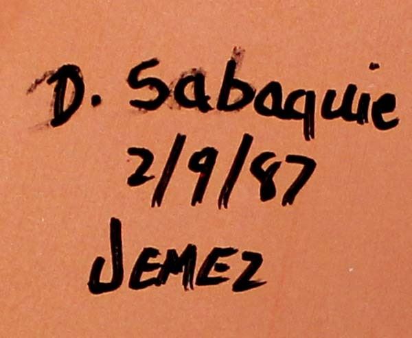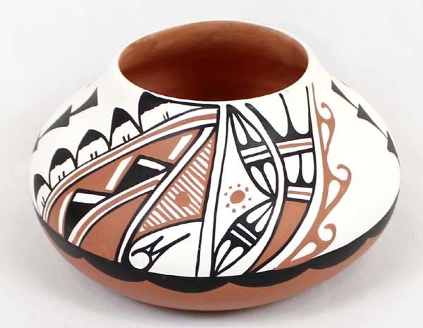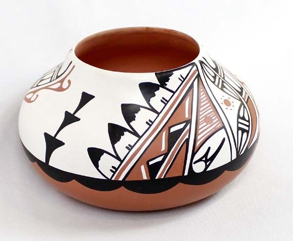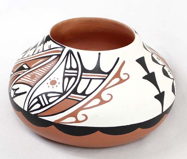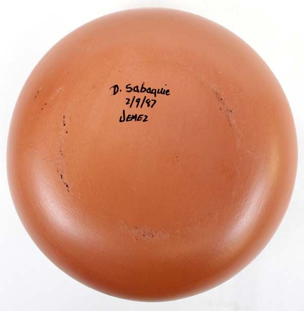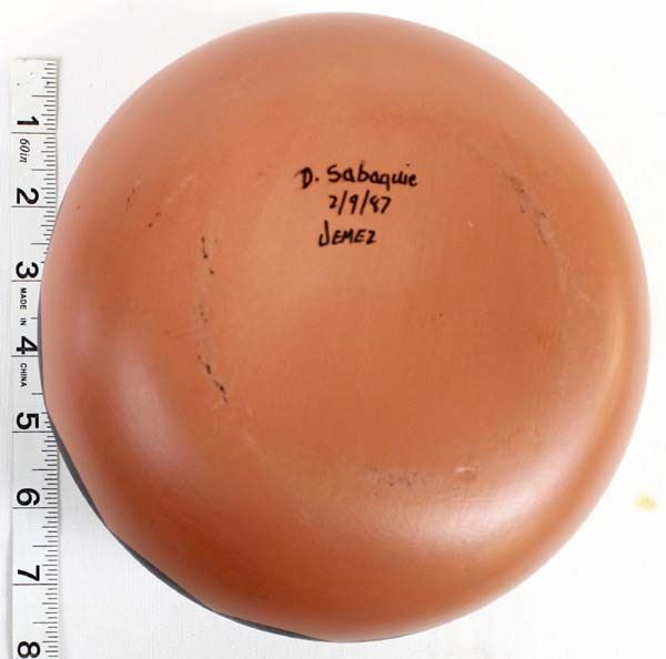 Native American Jemez Hand Painted Ceramic Bowl by D. Sabaquie, measures 4'' x 7.5''