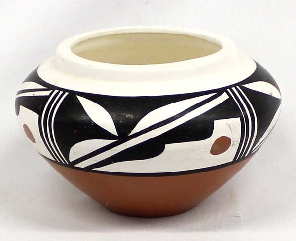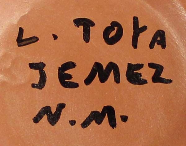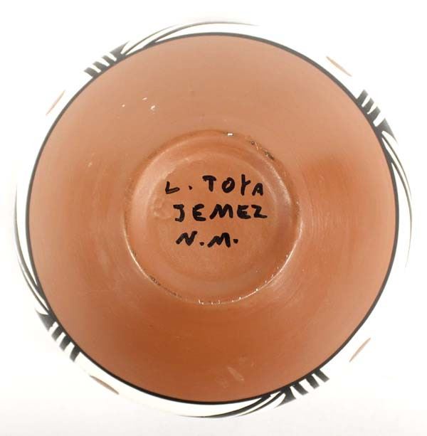 Native American Jemez Hand Painted Ceramic Pottery Bowl by L. Toya, measures 4.5''H x 7''D and is signed on the bottom, some scuffing