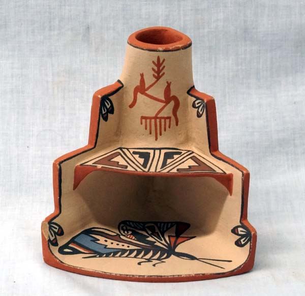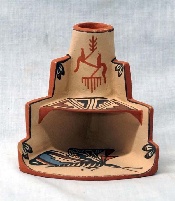 Native American Jemez Miniature Polychrome Pottery Fireplace, hallmarked JHW Jemez, features beautiful hand painted designs