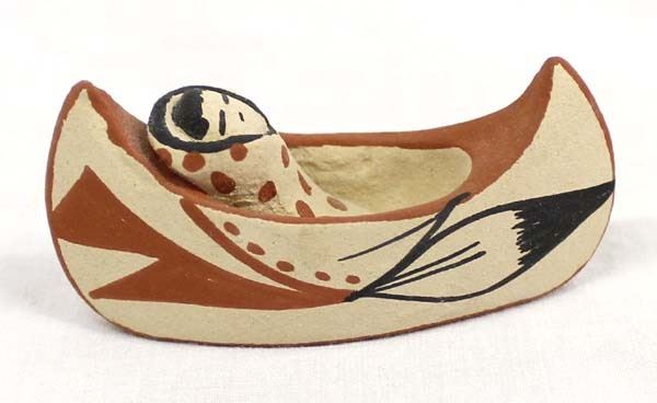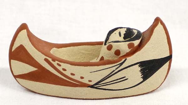 Jemez Miniature Pottery Canoe with Child, Chinana