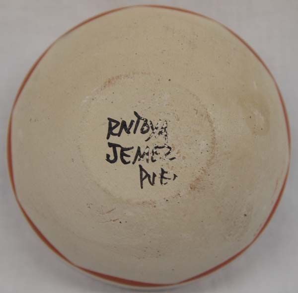 Jemez Polychrome Bowl by Toya. Bowl measures 2.75'' x 4'', signed ''RNToya'' ''Jemez'' Pueblo.