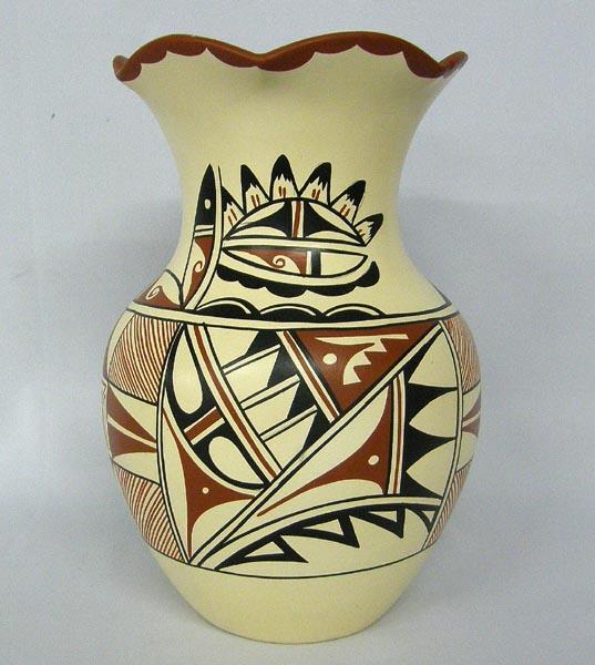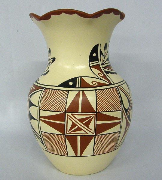 Jemez Polychrome Jar Fluted Rim by Chinana. Signed on the bottom, ''Chinana Jemez.'' SHI $40.