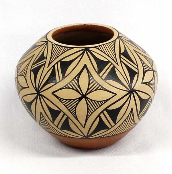 Native American Jemez Polychrome Pottery Jar by D. Tosa, measures 4'' x 4.5'' and is signed on the bottom