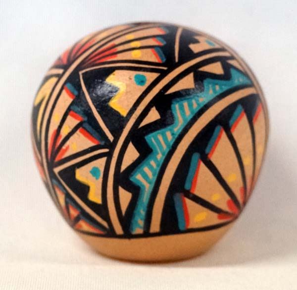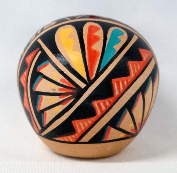 Native American Jemez Polychrome Seed Jar by R. Toya, signed by artist and measures 3'' x 3''