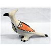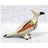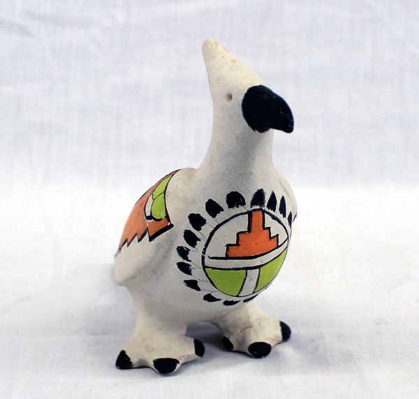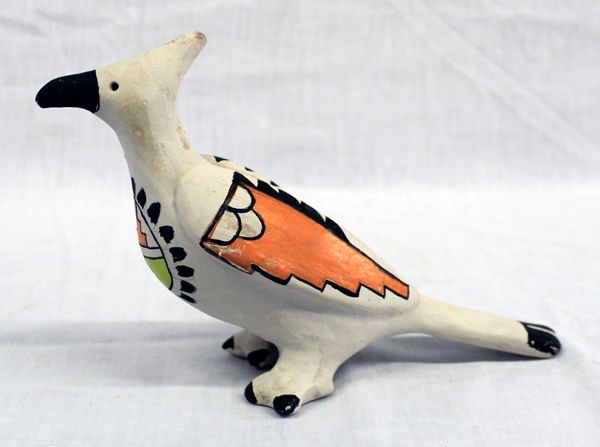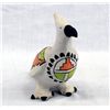 Jemez Poster Paint Roadrunner Pottery Bird, measures 5.5'' x 8.5'', brightly painted Native American designs on white roadrunner, heavy clay, the roadrunner is New Mexico's state bird