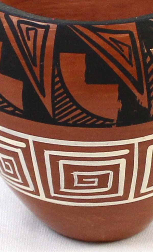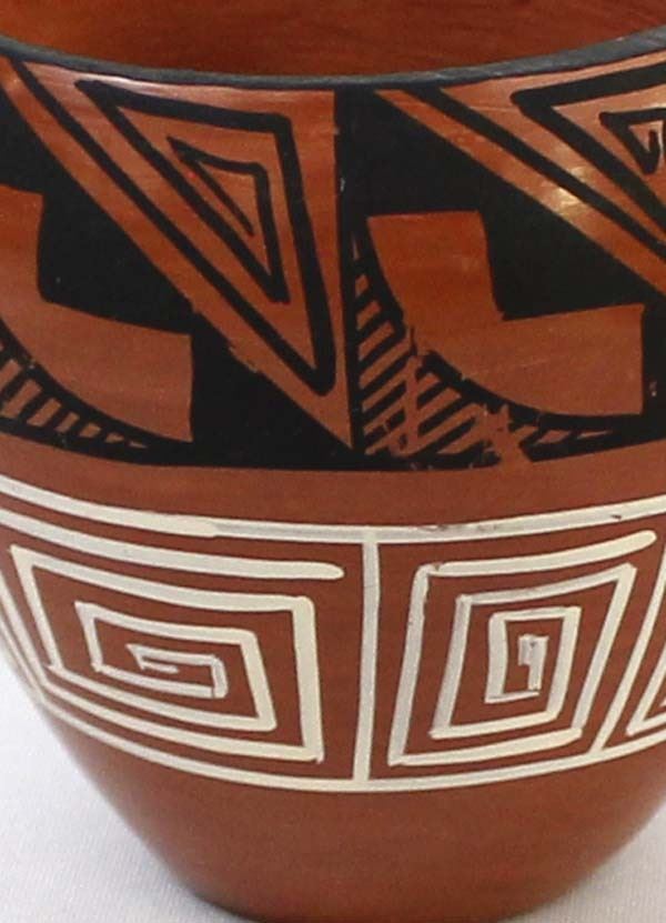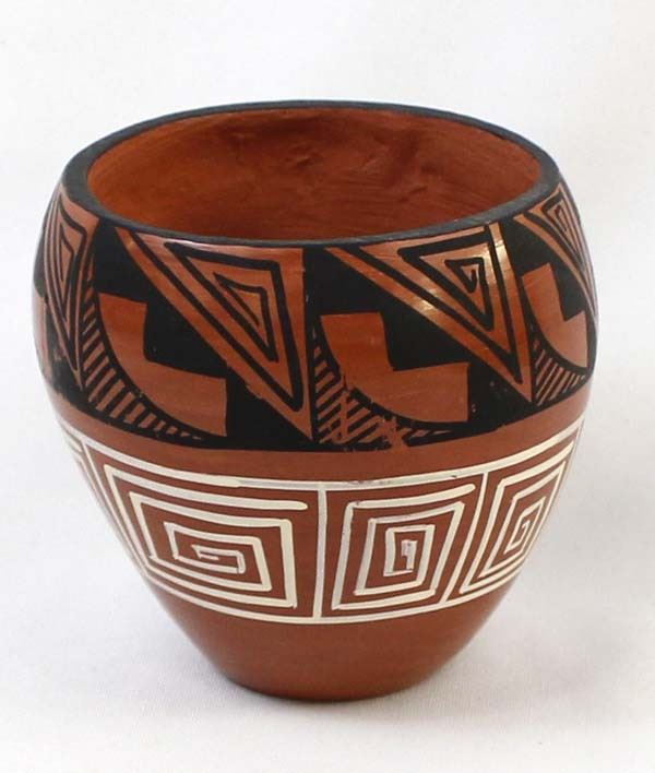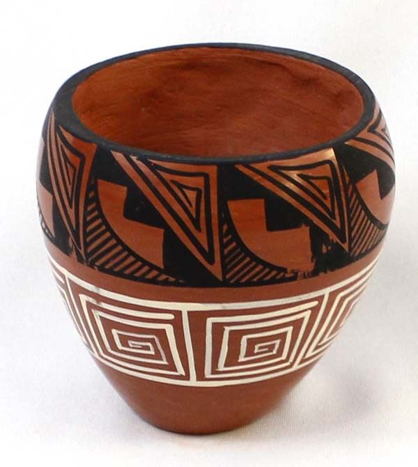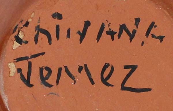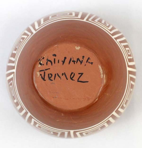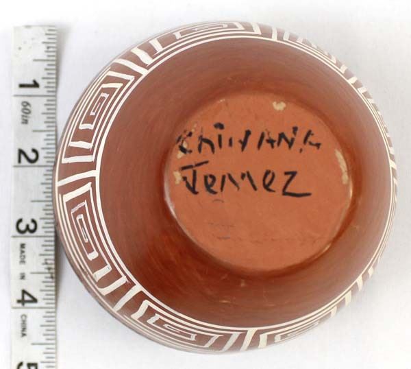 Native American Jemez Pottery Bowl by Chinana, measures 4'' x 4'' and is signed on the bottom, some scuffing, nice thick walled jar