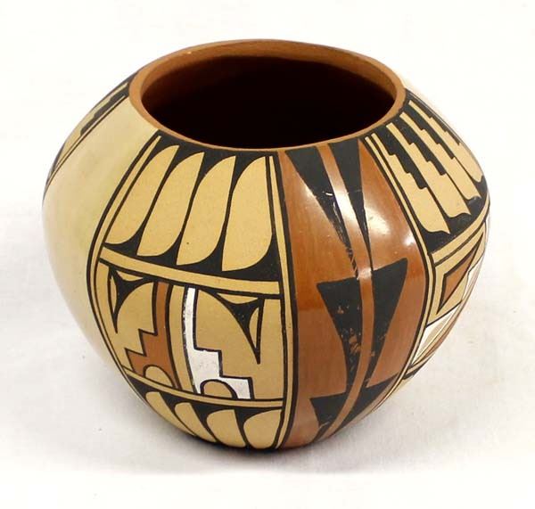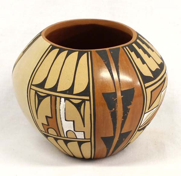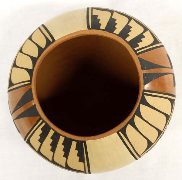 Jemez Pottery Bowl by Maxine Andrew (Yepa), measures 5'' x 6'' and is signed on the bottom, some paint loss