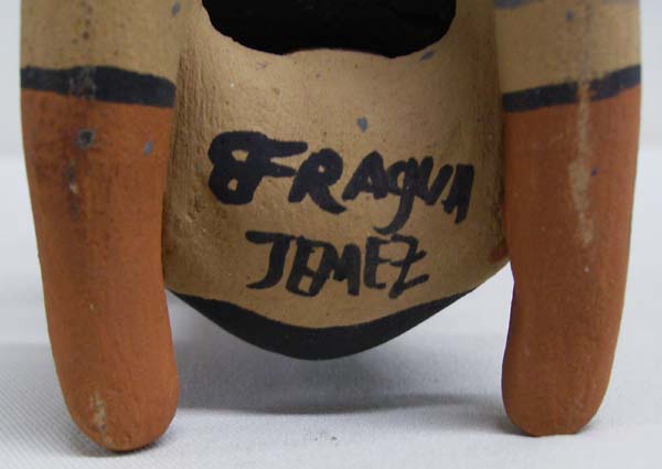 Native American Jemez Pottery Clown Doll by E. Fragua. Measures approx. 5''H x 2 1/3''W x 2 1/3''D. Buyers Pay Actual Shipping and Handling Charges(see terms and conditions for more information).