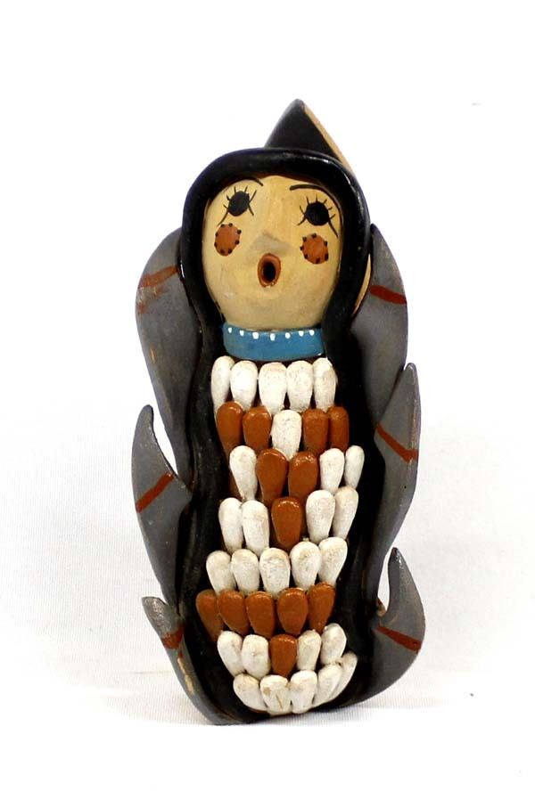 Native American Jemez Pottery Corn Maiden Storyteller by Vera Fragua, measures 3'' x 6'' and is signed on the bottom