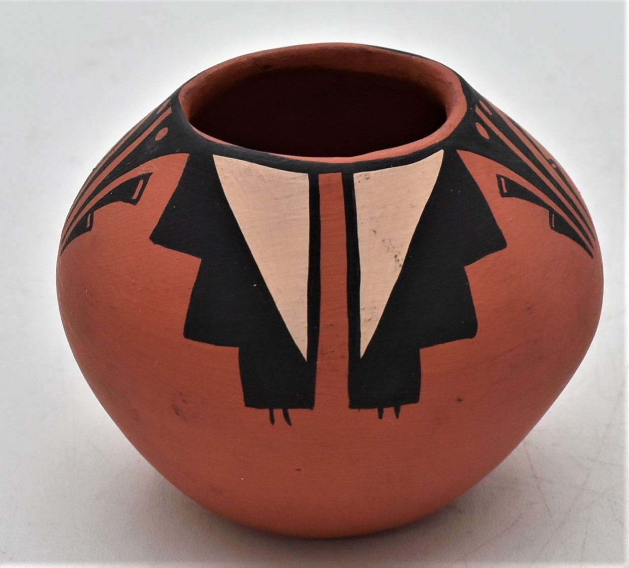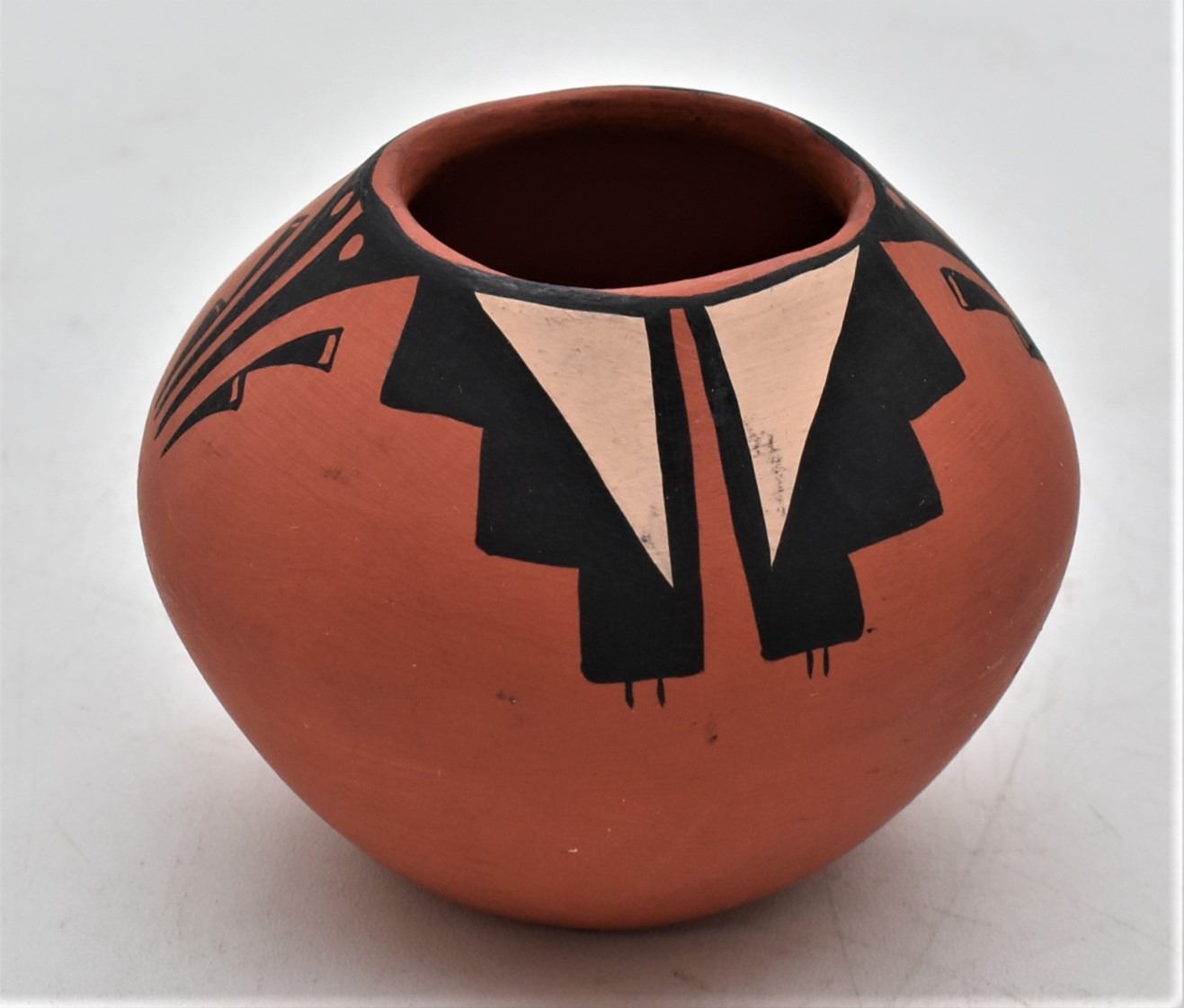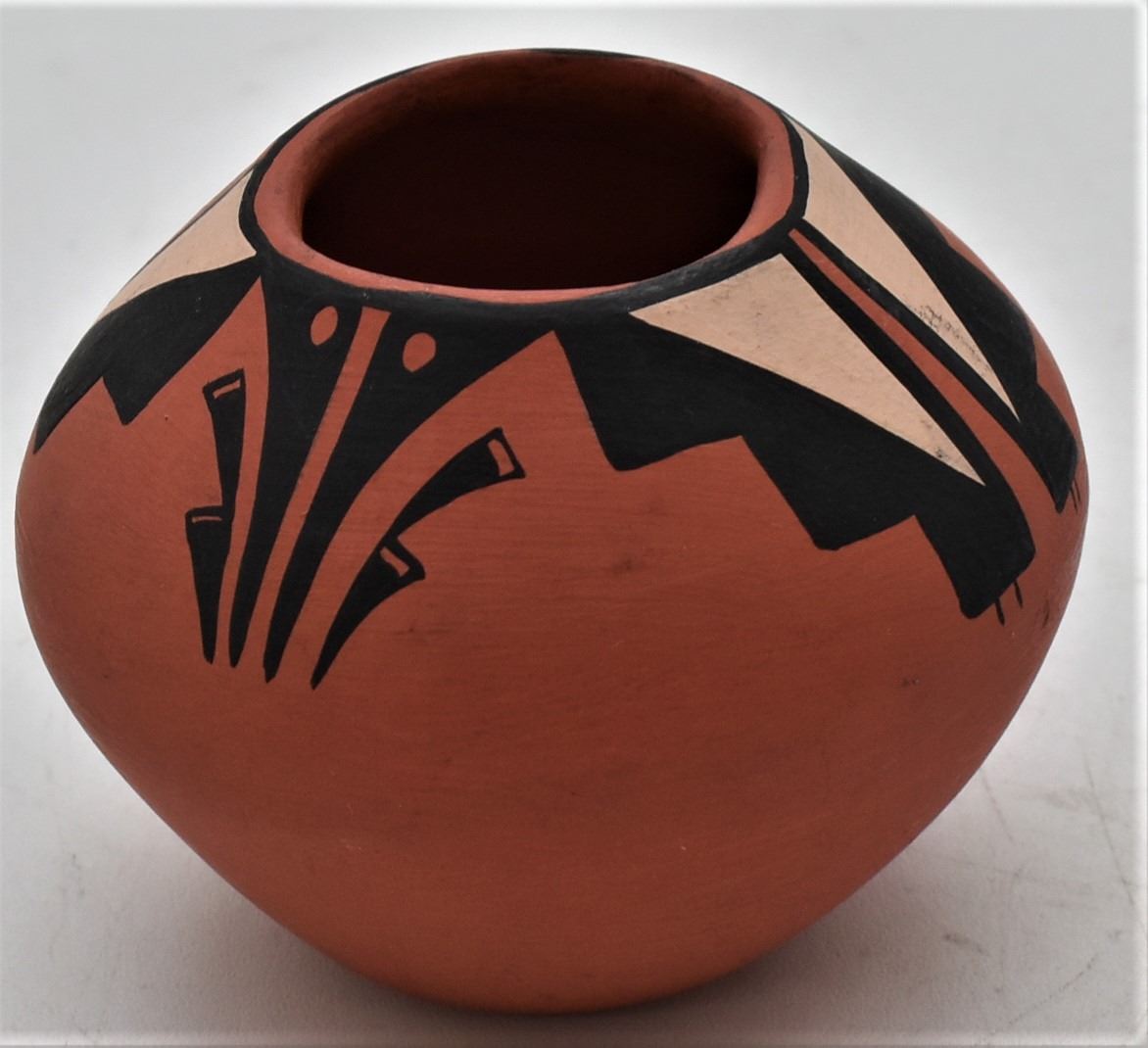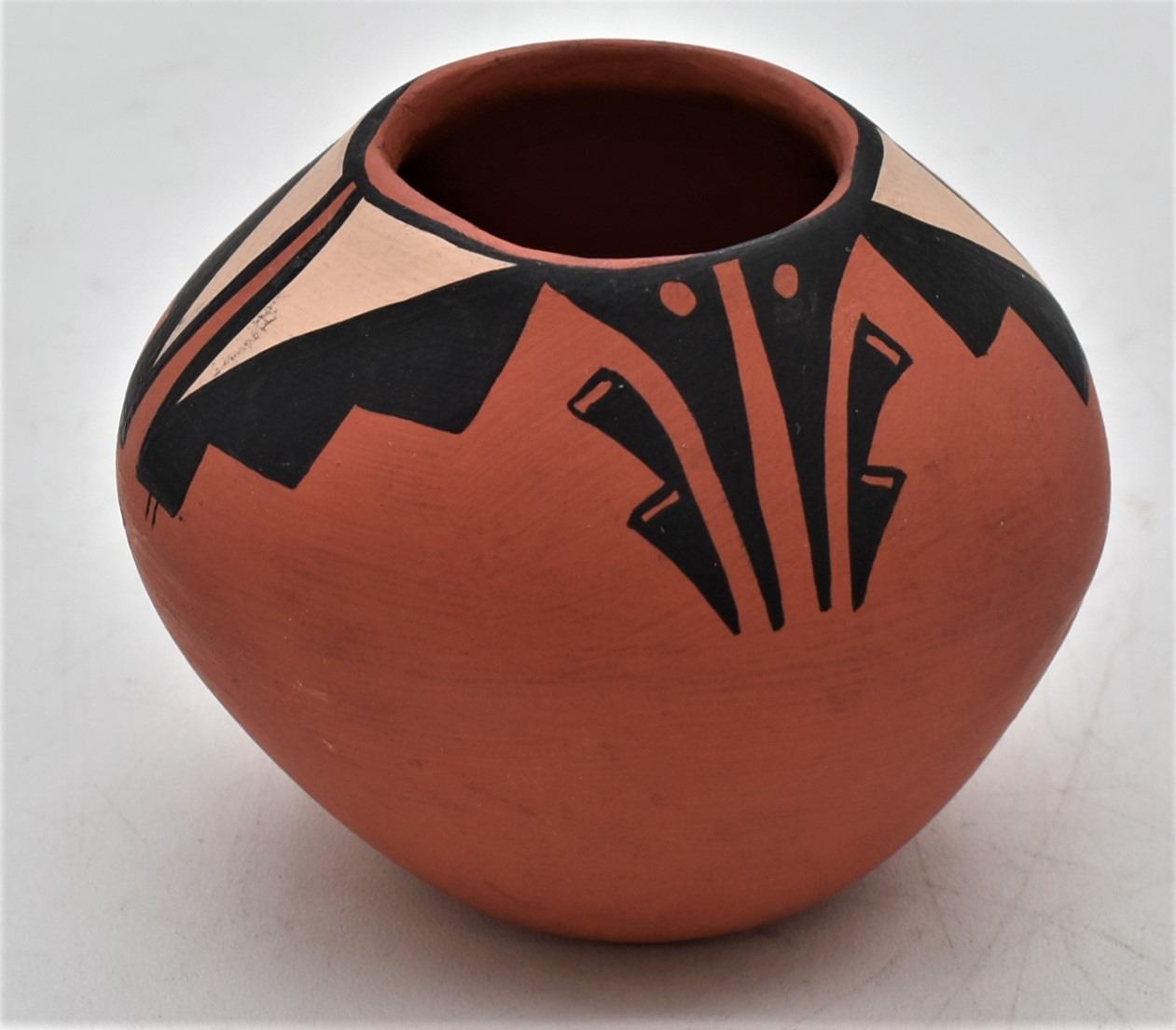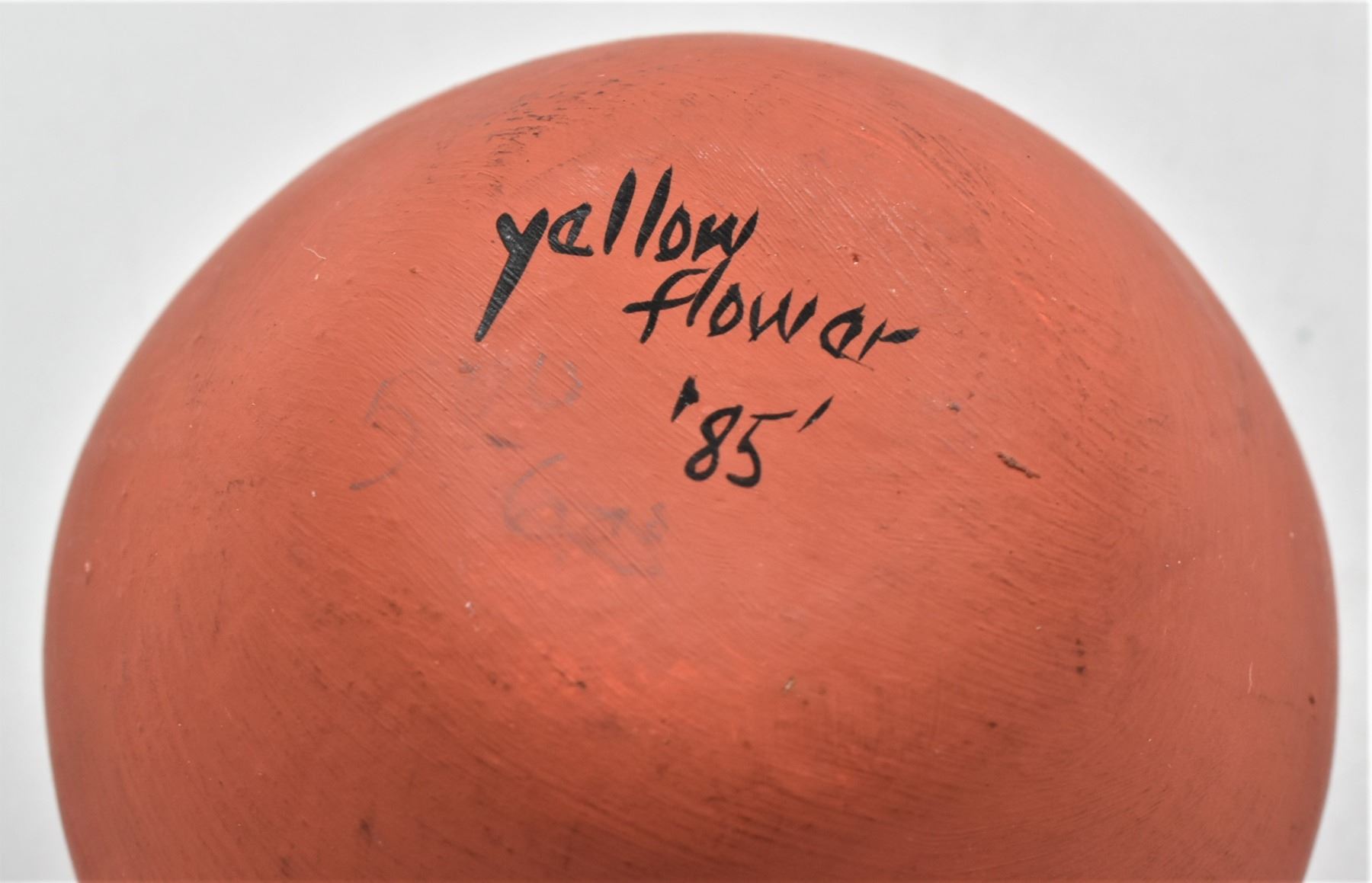 Native American Jemez Pottery Jar by Yellow Feather, measures 2.5'' x 3'' and is signed on the bottom
