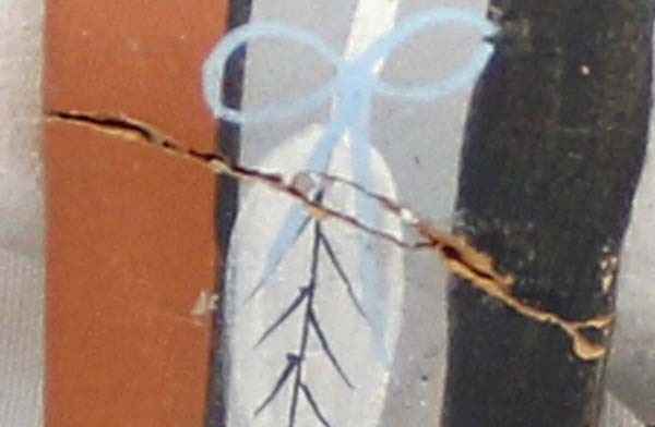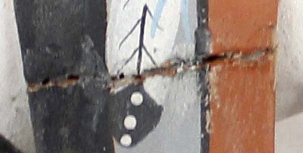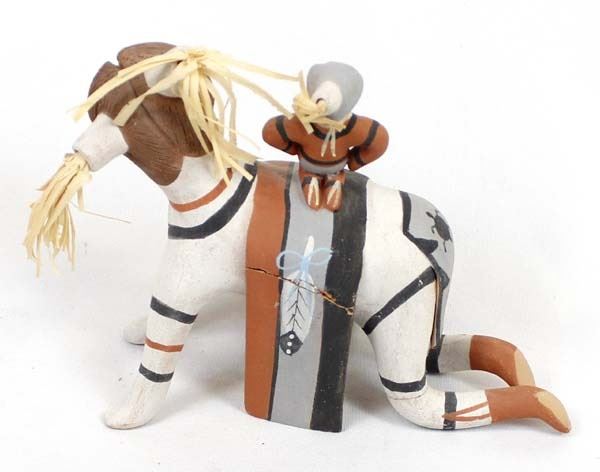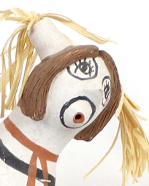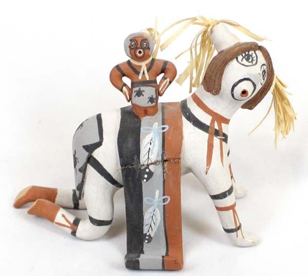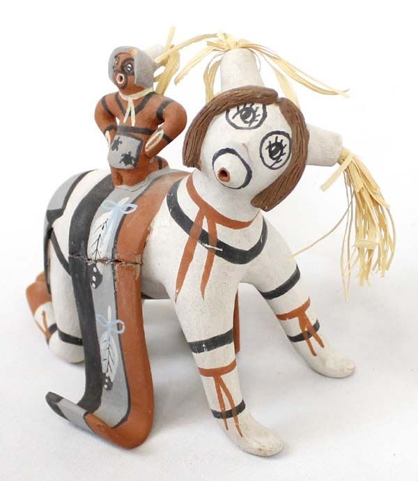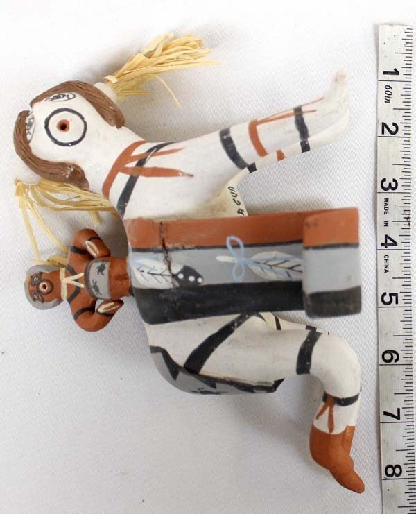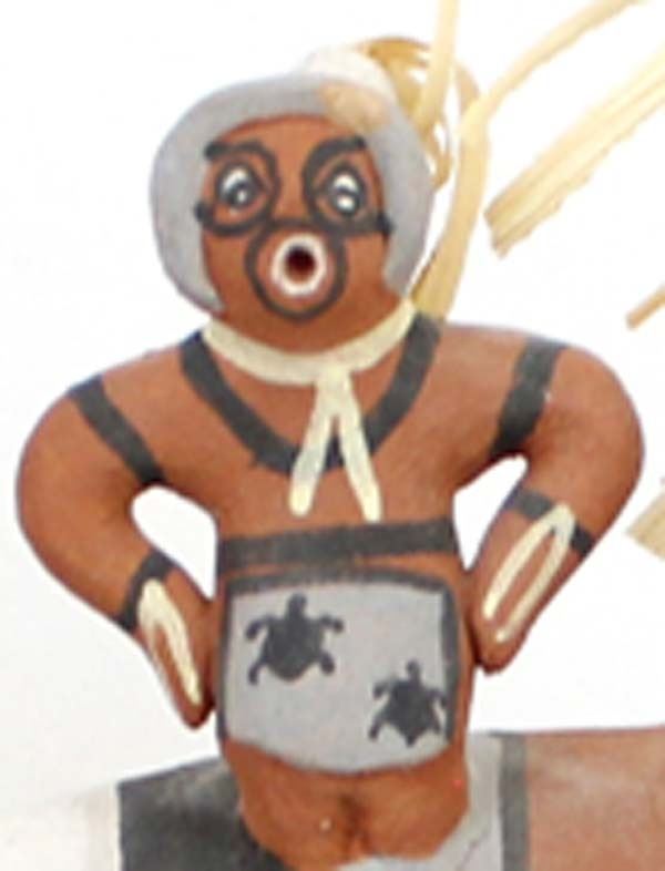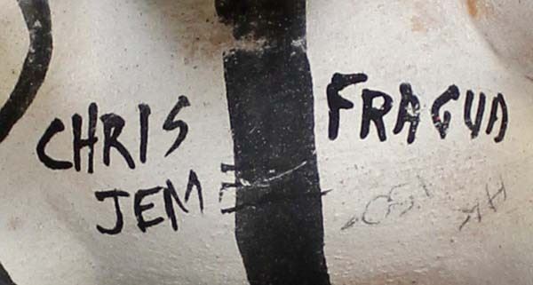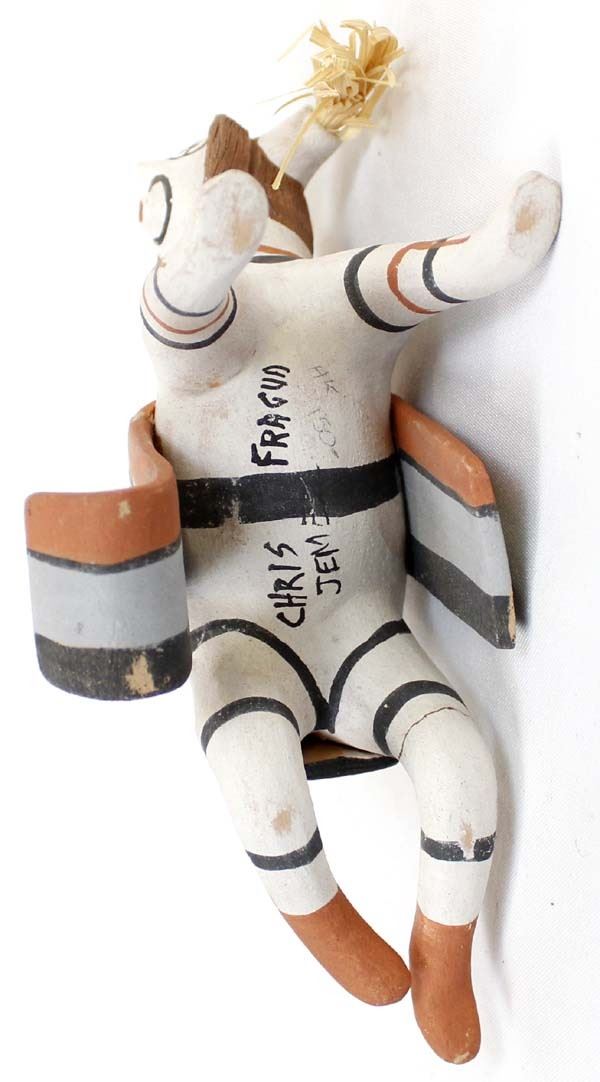 Native American Jemez Pottery Koshare Folk Art by Chris Fragua, measures 6.25'' x 7.5'' and is signed on the bottom, both sides of the blanket has been glued, however not professionally