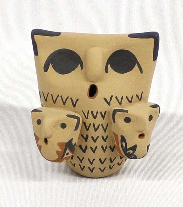 Native American Jemez Pottery Owl Storyteller by V. Toya, measures 2.5'' x 3'' x 2'' and is signed on the bottom