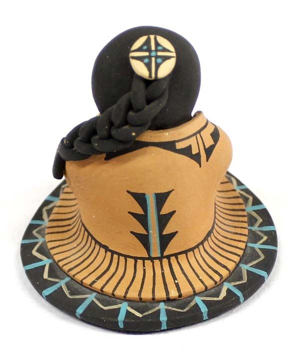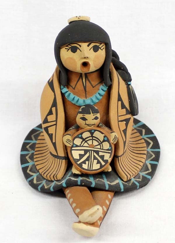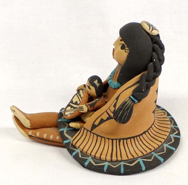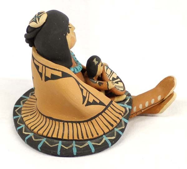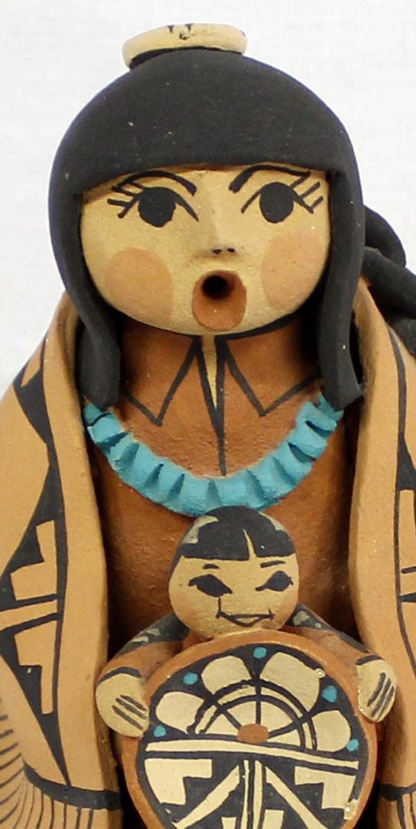 Native American Jemez Pottery Storyteller by Carol Lucero Gachupin (b. 1958), measures 6'' x 4'' x 4'' and is signed on bottom of legs, small nip in pot that child is holding