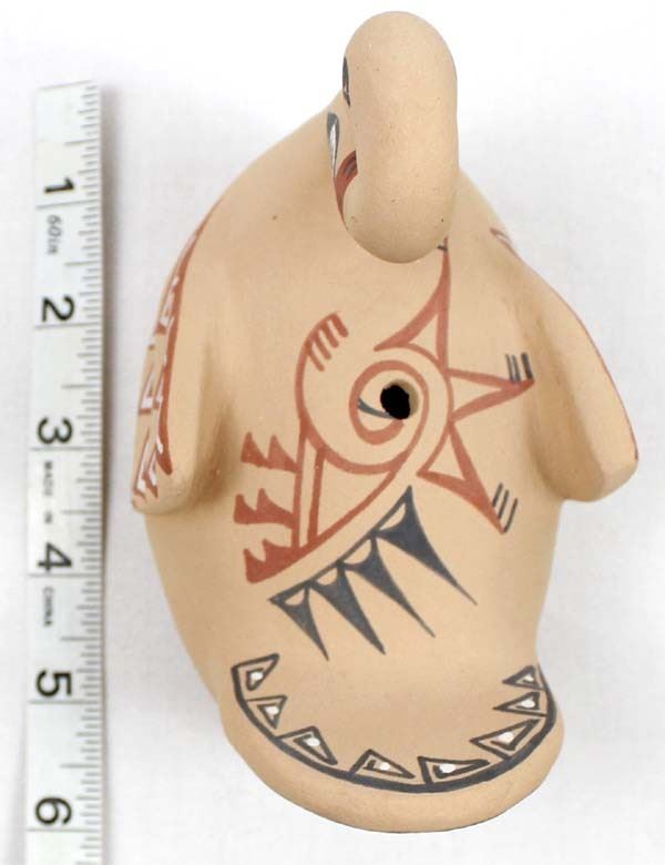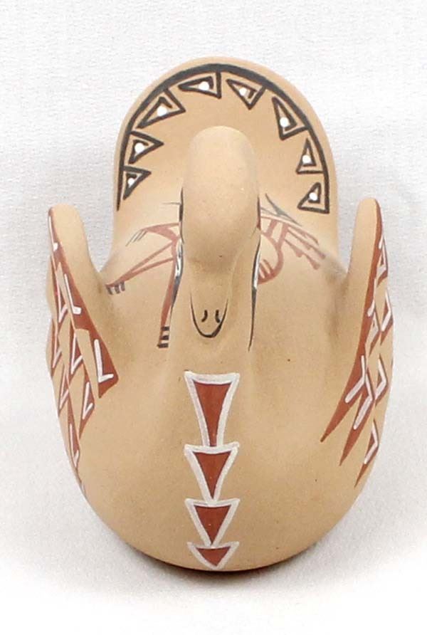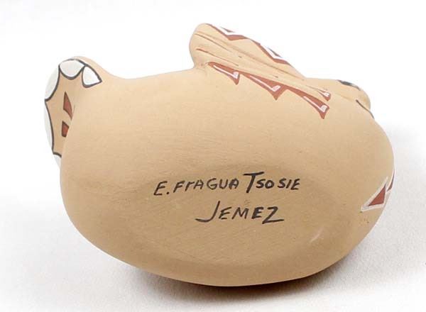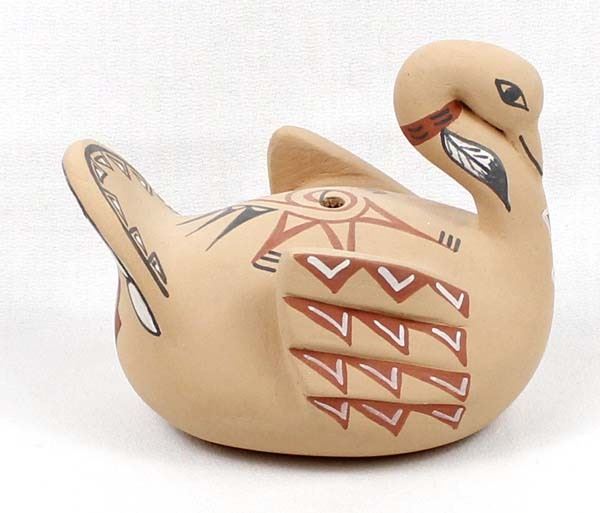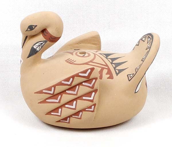 Native American Jemez Pottery Swan by E. Fragua Tsosie, measures 4'' x 5'' x 3'' and is signed on the bottom