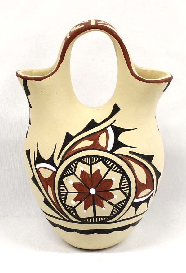 Native American Jemez Pottery Wedding Vase by Chinana, measures 7.5''H x 4''W x 4.5''Deep and is signed by the artist