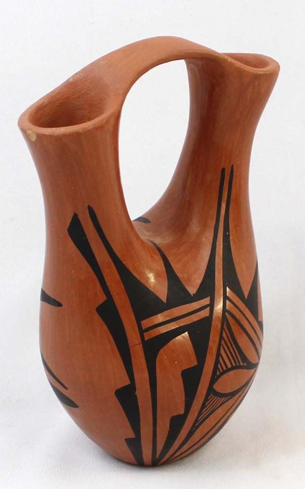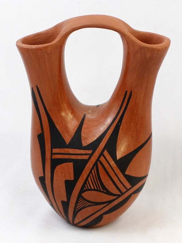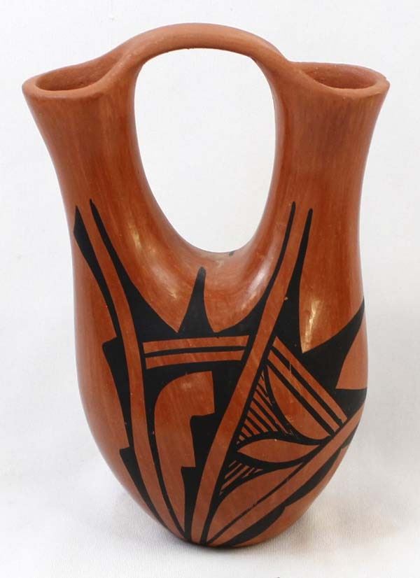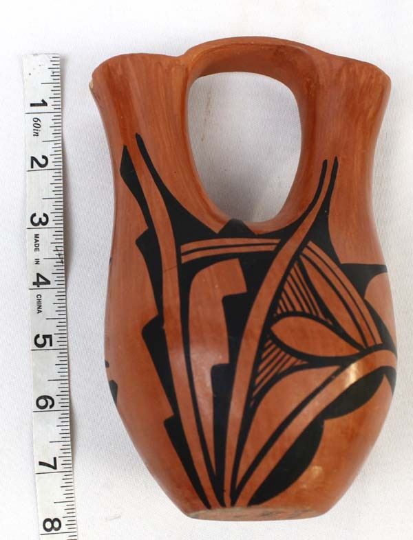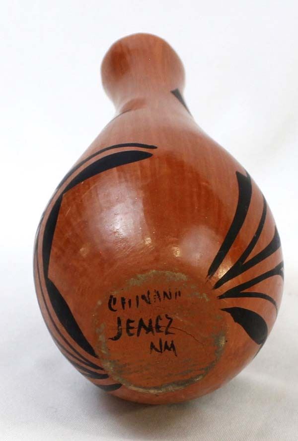 Native American Jemez Pottery Wedding Vase by Chinana, measures 3.5'' x 5'' x 7'' and is signed on the bottom, nice thick walled vase