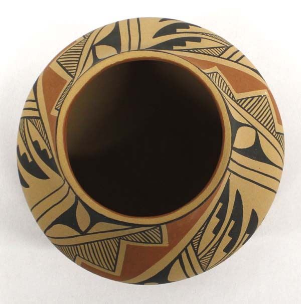Native American Jemez Pueblo Polychrome Pottery Jar by D. Tosa, measures 5'' x 4.5'' and is signed on the bottom, beautiful piece