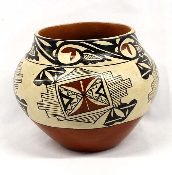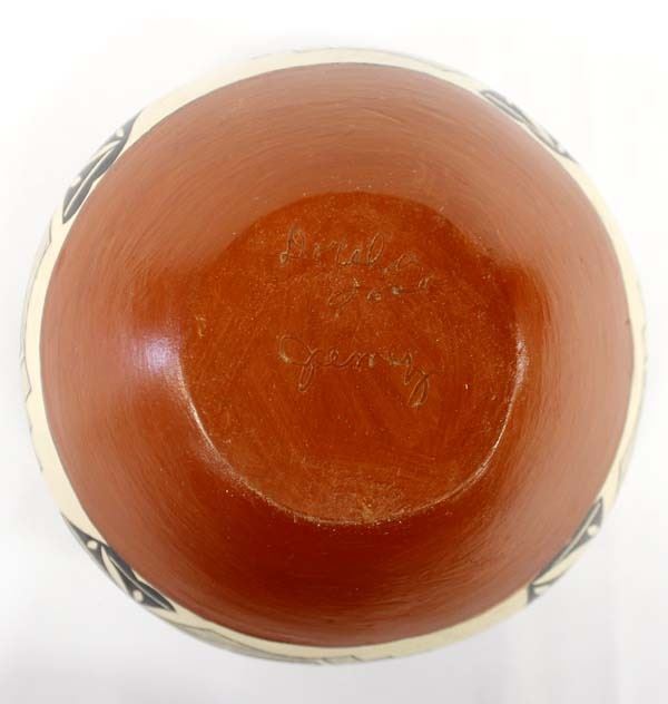 Native American Jemez Pueblo Polychrome Pottery Jar by Dorela Tosa, signed by the artist and measures 5.5''H x 7''D